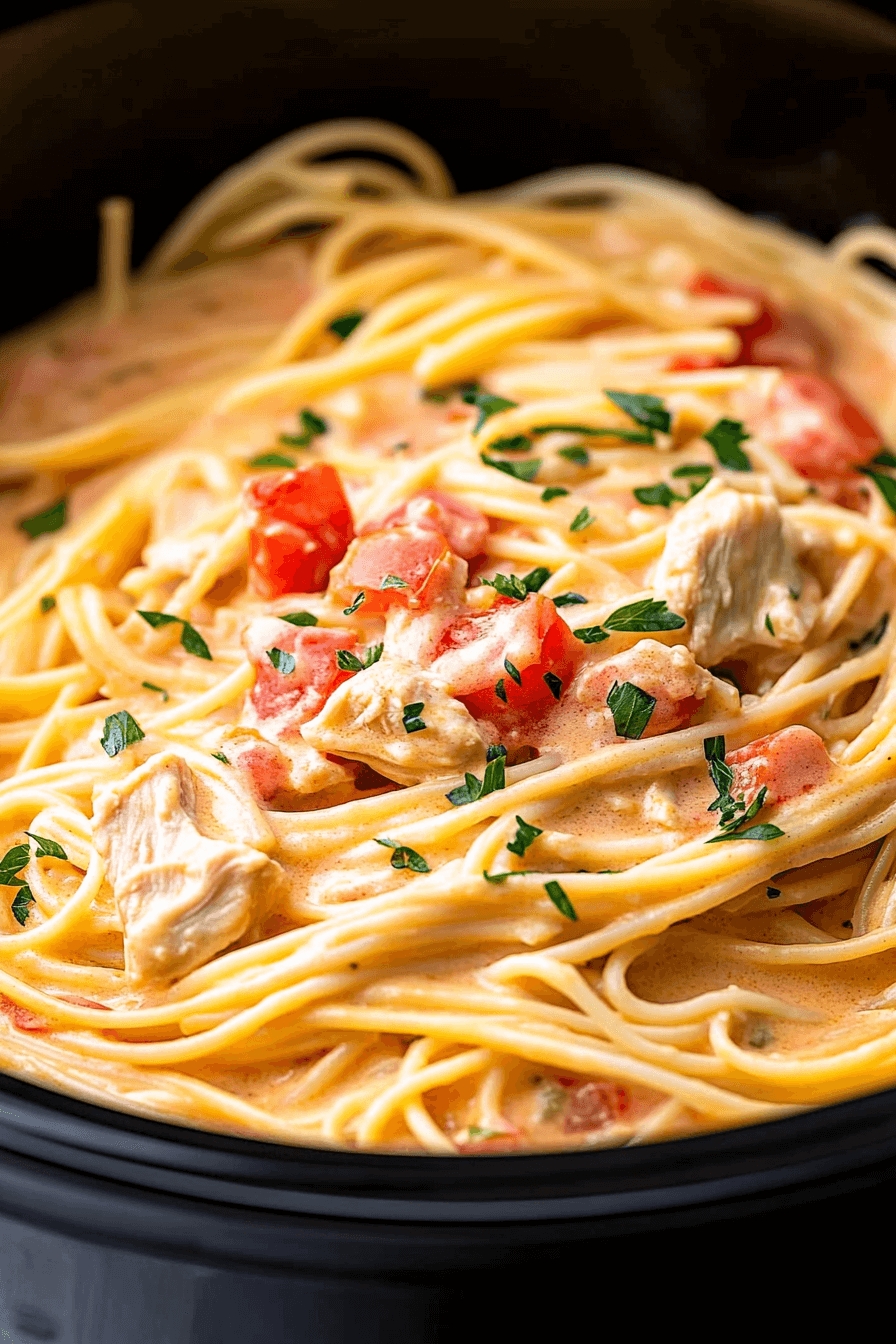Creamy Crockpot Chicken Spaghetti