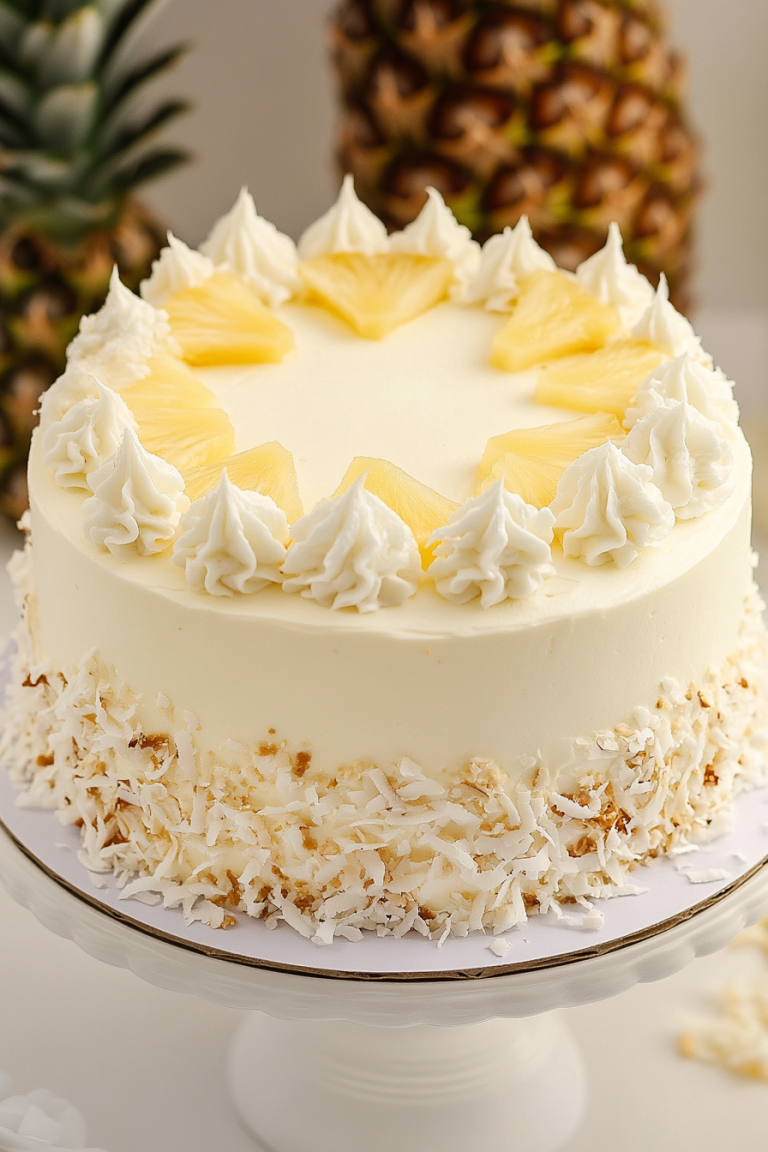 Cake: Yellow Cake Mix gives you a fluffy, moist base with a buttery flavor to match the pineapple and coconut. You may use your brand of choice, but a good mix will produce the best texture.